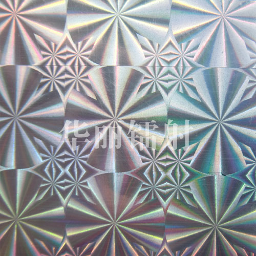 彩色镭射膜采用技术 镭射膜一般采用计算机点阵光刻技术、3D真彩色全息技术、多重与动态成像技术等。 制作工艺 经模压把具有彩虹动态、三维立体效果的全息图像转移到PET、BOPP、PVC或带涂层的基材上,然后利用复合、烫印、转移等方式使商品包装表面获得某种激光镭射效果。